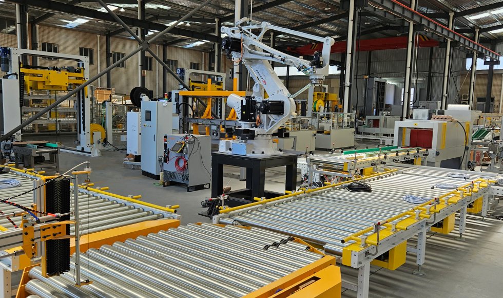查看詳情燃料棒自動套膜收縮碼垛包裝線,主要由輸送機(jī)、視覺識別、稱重剔除機(jī)、自動整理、套膜收縮機(jī)、自動供棧機(jī)、機(jī)器人自動碼垛機(jī)、全自動在線纏繞機(jī)等設(shè)備組合而成。